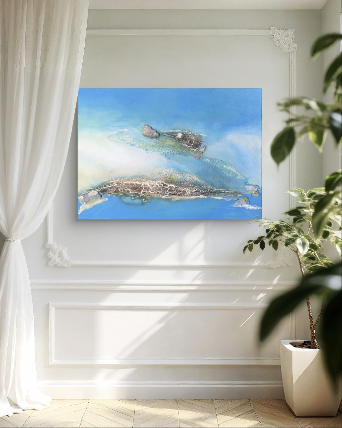 Reflexionen über das Schaffen texturierter Abstraktionen, das Gestalten von Atmosphäre und die leisen Räume, wo Kunst und Interior Design sich begegnen.